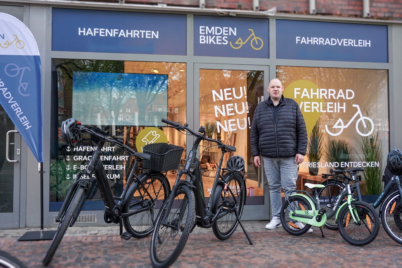 Emden. Die AG EMS erwei­tert ihr tou­ris­ti­sches Ange­bot in der See­ha­fen­stadt: Am Frei­tag, 17. April 2026, eröff­net in zen­tra­ler Lage der Emder Innen­stadt der neue Fahr­rad­ver­leih „Emden Bikes“ in der Neu­tor­stra­ße 14. Besu­che­rin­nen, Besu­cher und Ein­hei­mi­sche kön­nen dort moder­ne E‑Bikes der Mar­ke Kalk­hoff sowie wei­te­re Fahr­rä­der für Tou­ren durch Emden und das ost­frie­si­sche Umland mie­ten. Damit setzt die Ree­de­rei kon­se­quent auf nach­hal­ti­ge Mobi­li­tät und fle­xi­ble Frei­zeit­ge­stal­tung – ide­al für eine ent­spann­te Run­de ent­lang der Wall­an­la­gen, eine Tour durch das Hafen­um­feld oder einen Aus­flug ins Grüne.