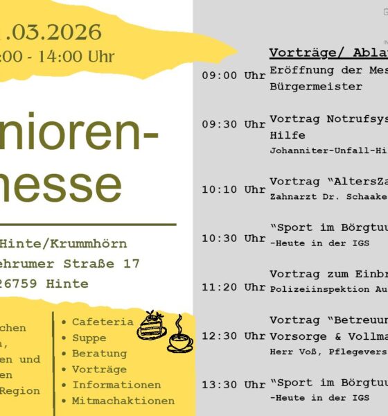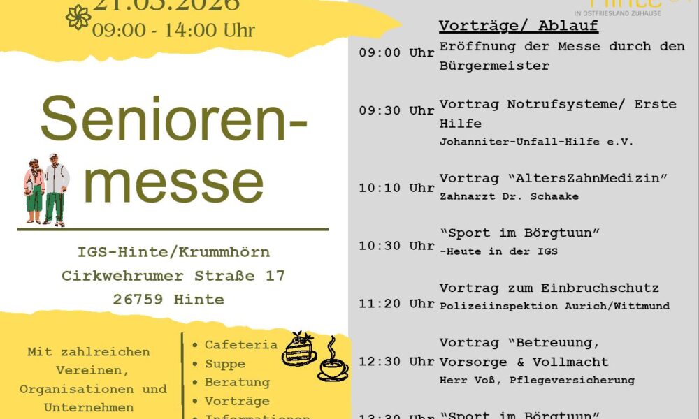 Bild: Gemeinde Hinte Hinte. Wie gelingt ein gutes, sicheres und gesundes Leben im Alter? Antworten darauf gibt die 2. Seniorenmesse der Gemeinde...